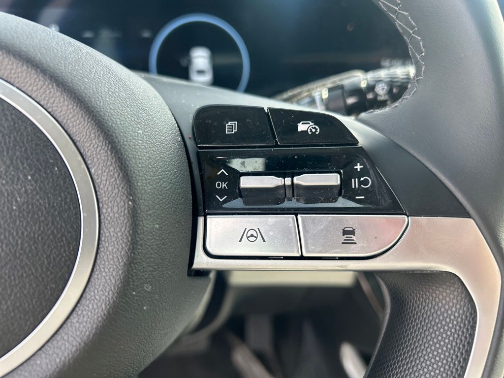 Option Group 01, 17" x 7.0J Alloy Wheels, 4-Wheel Disc Brakes, 8 Speakers, ABS brakes, Air Conditioning, All-Season Fitted Liners, Alloy wheels, AM/FM radio: SiriusXM, Apple CarPlay & Android Auto, Auto High-beam Headlights, Auto-dimming Rear-View mirror, Automatic temperature control, Brake assist, Bumpers: body-color, Carpeted Floor Mats, Delay-off headlights, Driver door bin, Driver vanity mirror, Dual front impact airbags, Dual front side impact airbags, Electronic Stability Control, Emergency communication system: Bluelink+, First Aid Kit, Front anti-roll bar, Front Bucket Seats, Front Center Armrest, Front dual zone A/C, Front reading lights, Front wheel independent suspension, Fully automatic headlights, H-Tex Leatherette Seats, Heated door mirrors, Heated Front Bucket Seats, Heated front seats, Illuminated entry, Leather steering wheel, Low tire pressure warning, Navigation System, Occupant sensing airbag, Outside temperature display, Overhead airbag, Overhead console, Panic alarm, Passenger door bin, Passenger vanity mirror, Power door mirrors, Power driver seat, Power moonroof, Power steering, Power windows, Radio: AM/FM/HD/SiriusXM Display Audio, Rear seat center armrest, Rear side impact airbag, Rear window defroster, Remote keyless entry, Reversible Cargo Tray, Security system, Speed control, Speed-sensing steering, Split folding rear seat, Steering wheel mounted audio controls, Tachometer, Telescoping steering wheel, Tilt steering wheel, Traction control, Trip computer, Turn signal indicator mirrors, and Variably intermittent wipers.